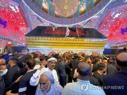 Shiite Muslim worshippers gather in the holy shrine of Imam Ali ahead of the Arbaeen ritual in Najaf, Iraq, Friday, Sept. 24, 2021. The holiday marks the end of the forty day mourning period after the anniversary of the martyrdom of Imam Hussein, the Prophet Muhammad's grandson in the 7th century. (AP Photo/Hadi Mizban)