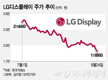 김정환 한국투자증권 연구원은 "중국발 LCD TV 수요 둔화가 LCD 수급 완화를 촉발했고, LCD 패널 가격 하락폭이 예상보다 더 가팔라지고 있다"며 "1년 넘게 견조했던 IT(정보기술)용 LCD 패널 수요도 전년 대비 감소세를 보일 것"이라고 말했다.