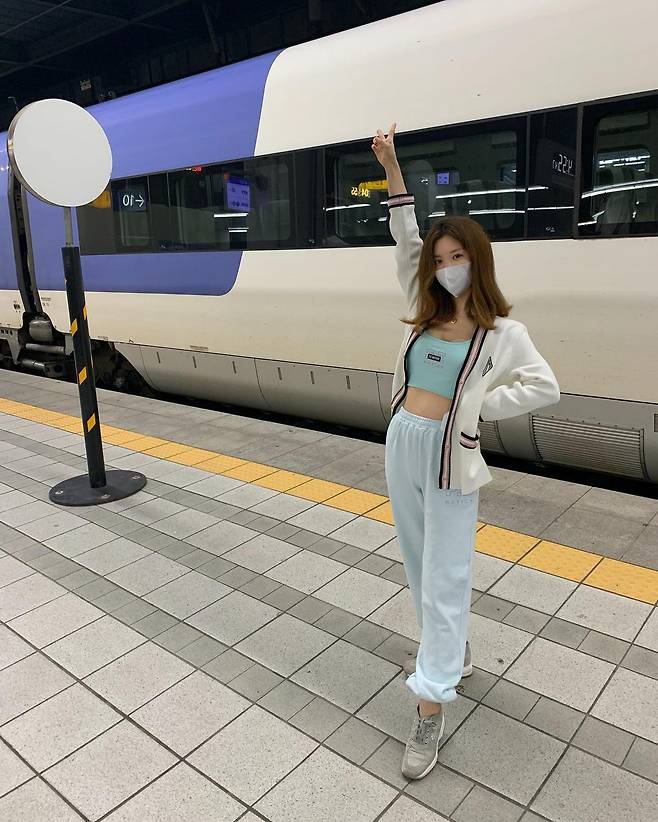 사진 속 함연지는 KTX 앞에서 인증샷을 남기고 있는 모습.