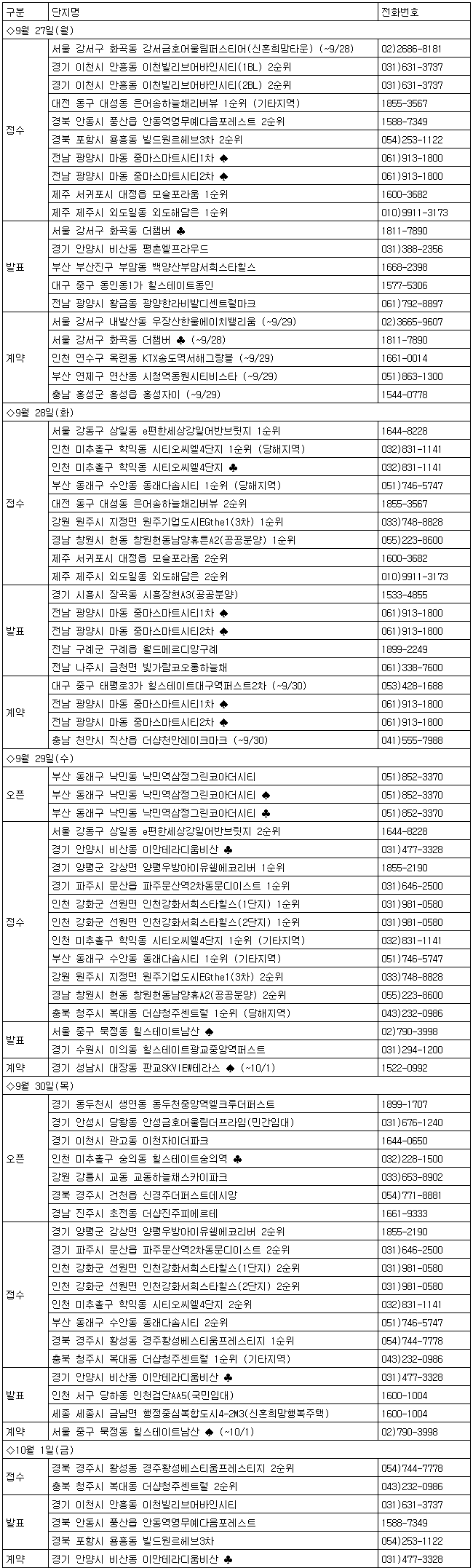 아울러 다음 주 견본주택(모델하우스)은 경기도 이천시 관고동 '이천자이더파크', 부산 동래구 낙민동 '낙민역삼정그린코아더시티', 경북 경주시 건천읍 '신경주더퍼스트데시앙' 등 8곳이 개관을 앞두고 있다.