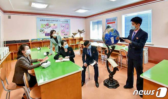(평양 노동신문=뉴스1) = 북한 노동당 기관지 노동신문은 25일 교원들의 역량 강화를 위한 사업이 전국 각지에서 진행 중이라고 전했다. 사진은 강계교원대학의 교원들이 역량 강화를 위한 교육을 진행 중인 모습.