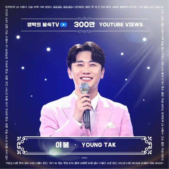 (엑스포츠뉴스 이정범 기자) 영탁의 ‘이불’ 공식 무대가 300만 뷰를 넘어섰다.