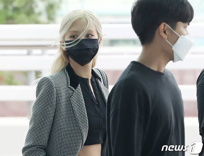 (인천공항=뉴스1) 이성철 기자 = 블랙핑크 로제가 25일 파리 패션위크 참석을 위해 인천공항 제2터미널에 도착하고 있다. 2021.9.25/뉴스1