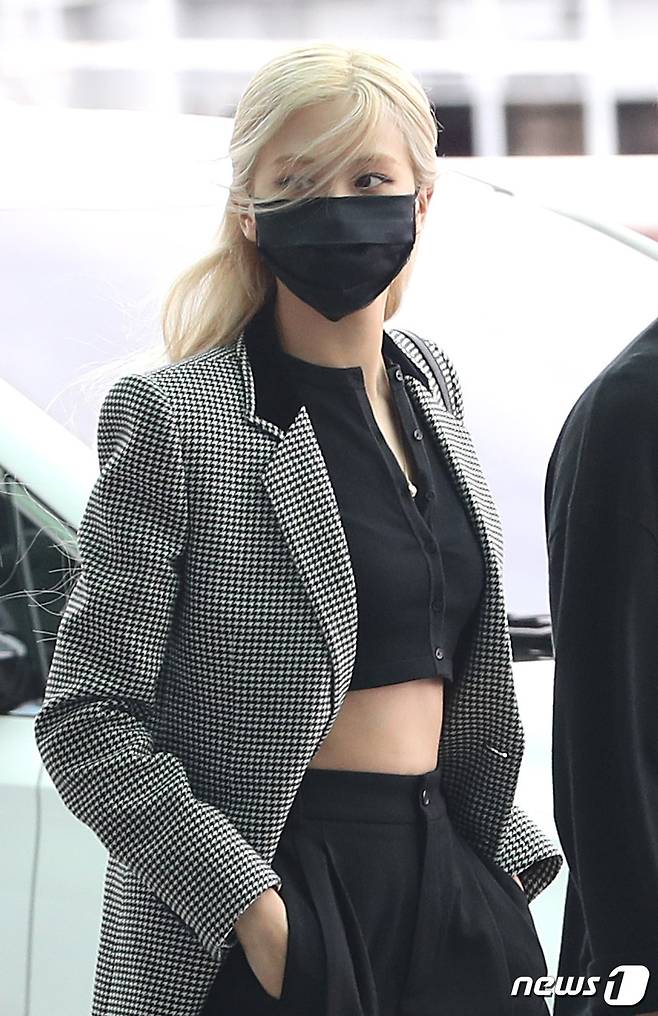 (인천공항=뉴스1) 이성철 기자 = 블랙핑크 로제가 25일 파리 패션위크 참석을 위해 인천공항 제2터미널에 도착하고 있다. 2021.9.25/뉴스1