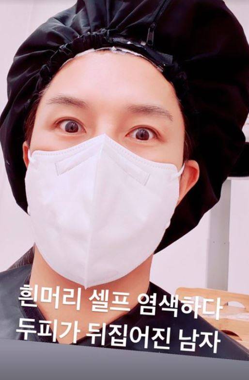 김동완은 25일 자신의 인스타그램 스토리에 "흰머리 셀프 염색하다 두피가 뒤집어진 남자"라는 글과 함께 사진을 게재했다.