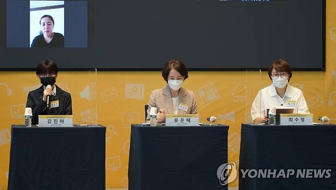 (서울=연합뉴스) 유은혜 부총리 겸 교육부 장관이 25일 서울 SKY31 컨벤션에서 열린 2022 개정 교육과정 학생·학부모 간담회에 참석해 있다. 2021.9.25