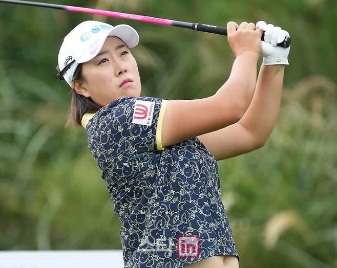 [이데일리 골프in(안산)=조원범 기자]25일 경기도 안산시 대부도에 위치한 아일랜드CC(파72.6613야드)에서 '엘크루-TV조선 프로 셀러브리티 2021'(총상금6억원,우승상금1억8백만원)2라운드가 열렸다.김해림이 1번홀에서 경기를 하고 있다.