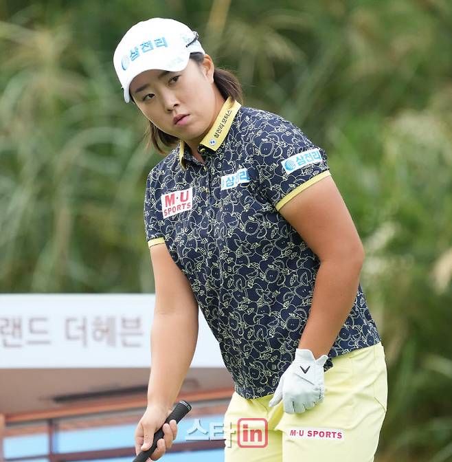 [이데일리 골프in(안산)=조원범 기자]25일 경기도 안산시 대부도에 위치한 아일랜드CC(파72.6613야드)에서 '엘크루-TV조선 프로 셀러브리티 2021'(총상금6억원,우승상금1억8백만원)2라운드가 열렸다.김해림이 1번홀에서 경기를 하고 있다.