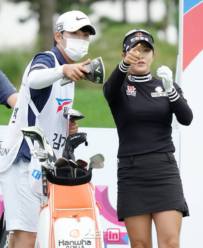 [이데일리 골프in(안산)=조원범 기자]25일 경기도 안산시 대부도에 위치한 아일랜드CC(파72.6613야드)에서 '엘크루-TV조선 프로 셀러브리티 2021'(총상금6억원,우승상금1억8백만원)2라운드가 열렸다.김지현이 1번홀에서 경기를 하고 있다.