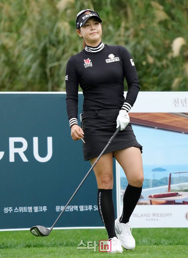 [이데일리 골프in(안산)=조원범 기자]25일 경기도 안산시 대부도에 위치한 아일랜드CC(파72.6613야드)에서 '엘크루-TV조선 프로 셀러브리티 2021'(총상금6억원,우승상금1억8백만원)2라운드가 열렸다.김지현이 1번홀에서 경기를 하고 있다.