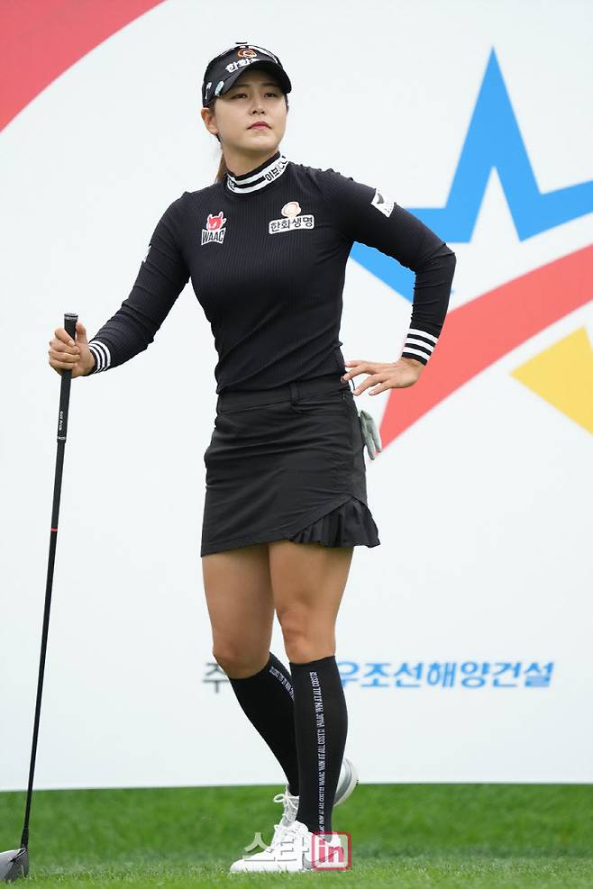 [이데일리 골프in(안산)=조원범 기자]25일 경기도 안산시 대부도에 위치한 아일랜드CC(파72.6613야드)에서 '엘크루-TV조선 프로 셀러브리티 2021'(총상금6억원,우승상금1억8백만원)2라운드가 열렸다.김지현이 1번홀에서 경기를 하고 있다.