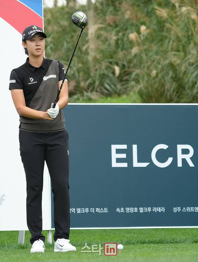 [이데일리 골프in(안산)=조원범 기자]25일 경기도 안산시 대부도에 위치한 아일랜드CC(파72.6613야드)에서 '엘크루-TV조선 프로 셀러브리티 2021'(총상금6억원,우승상금1억8백만원)2라운드가 열렸다.전우리가 1번홀에서 경기를 하고 있다.