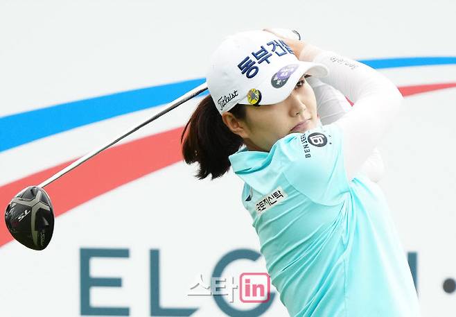 [이데일리 골프in(안산)=조원범 기자]25일 경기도 안산시 대부도에 위치한 아일랜드CC(파72.6613야드)에서 '엘크루-TV조선 프로 셀러브리티 2021'(총상금6억원,우승상금1억8백만원)2라운드가 열렸다.장수연이 10번홀에서 경기를 하고 있다.