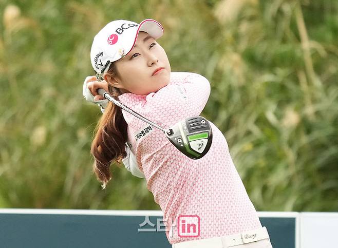 [이데일리 골프in(안산)=조원범 기자]25일 경기도 안산시 대부도에 위치한 아일랜드CC(파72.6613야드)에서 '엘크루-TV조선 프로 셀러브리티 2021'(총상금6억원,우승상금1억8백만원)2라운드가 열렸다.김우정이 10번홀에서 경기를 하고 있다.