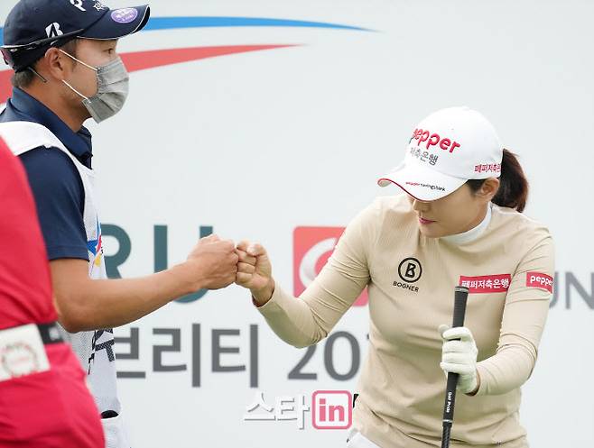 [이데일리 골프in(안산)=조원범 기자]25일 경기도 안산시 대부도에 위치한 아일랜드CC(파72.6613야드)에서 '엘크루-TV조선 프로 셀러브리티 2021'(총상금6억원,우승상금1억8백만원)2라운드가 열렸다.유수연이 1번홀에서 경기를 하고 있다.