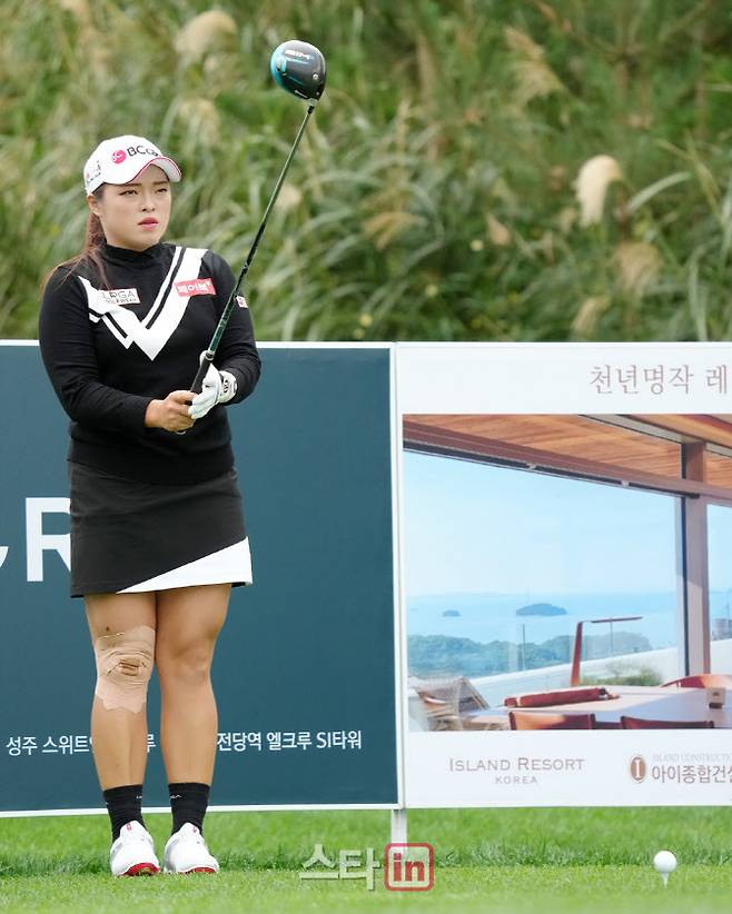 [이데일리 골프in(안산)=조원범 기자]25일 경기도 안산시 대부도에 위치한 아일랜드CC(파72.6613야드)에서 '엘크루-TV조선 프로 셀러브리티 2021'(총상금6억원,우승상금1억8백만원)2라운드가 열렸다.장하나가 1번홀에서 경기를 하고 있다.