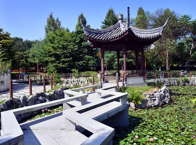 Greeting visitors from the entrance is the Korean garden. The garden has a number of replicas of historical architecture and landmarks, such as the gardens of Gyeongbokgung and Changdeokgung. A pavilion with a tiled roof installed in the middle of the garden represents the nation’s unique architectural style.
