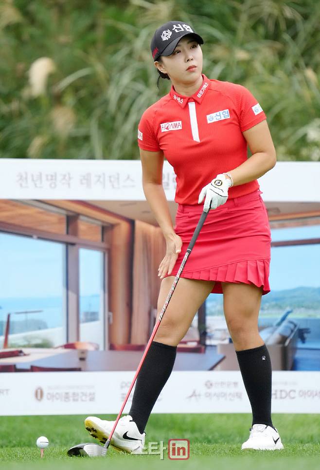[이데일리 골프in(안산)=조원범 기자]25일 경기도 안산시 대부도에 위치한 아일랜드CC(파72.6613야드)에서 '엘크루-TV조선 프로 셀러브리티 2021'(총상금6억원,우승상금1억8백만원)2라운드가 열렸다.이효린이 1번홀에서 경기를 하고 있다.