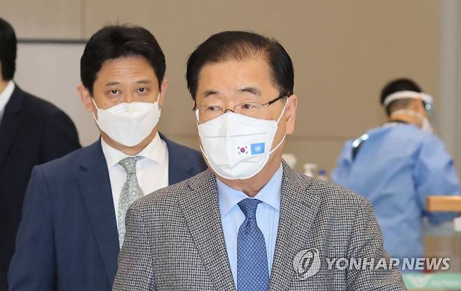 (영종도=연합뉴스) 한종찬 기자 = 유엔 총회 참석을 위해 뉴욕을 방문한 정의용 외교부 장관이 25일 오후 인천국제공항 2터미널을 통해 귀국하고 있다. 2021.9.25