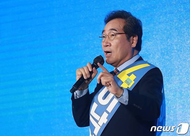 (광주=뉴스1) 구윤성 기자 = 이낙연 더불어민주당 대선 예비후보가 25일 광주 서구 김대중컨벤션센터에서 열린 더불어민주당 대선 후보 선출을 위한 광주·전남 합동연설회에서 정견발표를 하고 있다. 2021.9.25/뉴스1