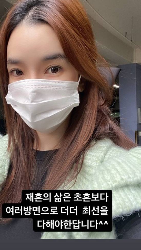공개된 사진에는 그의 셀카와 함께 "재혼의 삶은 초혼보다 여러 방면으로 더 더 최선을 다해야 한답니다"라는 글이 담겼다.
