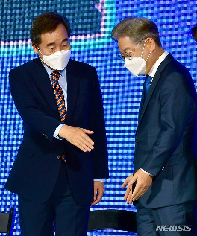 마주치는 이낙연·이재명 후보