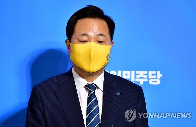 (광주=연합뉴스) 박철홍 기자 = 더불어민주당 김두관 대선 경선 후보가 25일 오후 광주 김대중컨벤션센터에서 열린 더불어민주당 대선 후보자 광주·전남 경선 결과 발표가 끝나고 인터뷰하고 있다. 2021.9.25 [공동취재]
