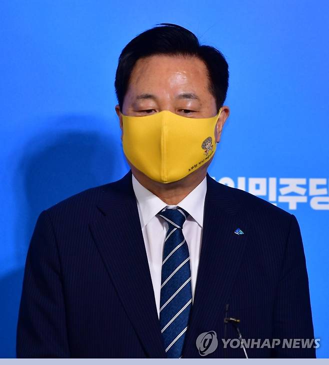 (광주=연합뉴스) 박철홍 기자 = 더불어민주당 김두관 대선 경선 후보가 25일 오후 광주 김대중컨벤션센터에서 열린 더불어민주당 대선 후보자 광주·전남 경선 결과 발표가 끝나고 인터뷰하고 있다. 2021.9.25 [공동취재]