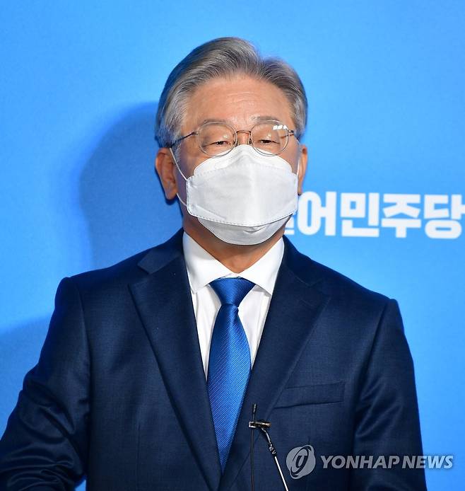(광주=연합뉴스) 박철홍 기자 = 더불어민주당 이재명 대선 경선 후보가 25일 오후 광주 김대중컨벤션센터에서 열린 더불어민주당 대선 후보자 광주·전남 경선 결과 발표가 끝나고 인터뷰하고 있다. 2021.9.25 [공동취재]