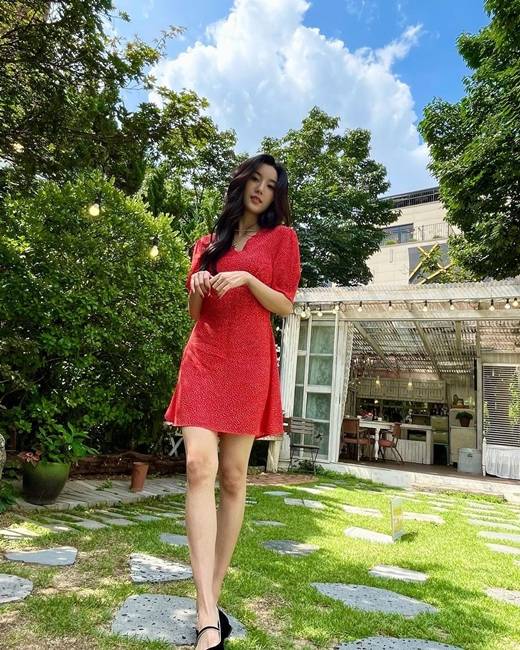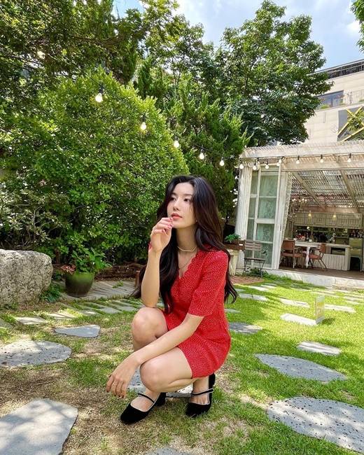 권은비는 25일 자신의 인스타그램에 "One Fine Day"란 글과 함께 일상을 담은 사진을 게재했다. 공개된 사진 속에는 붉은 색 드레스를 입은 권은비의 모습이 담겨있다.