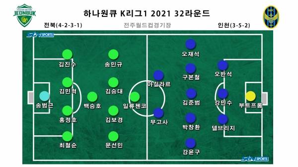 전북은 25일 오후 7시 전주월드컵경기장에서 치러진 인천과의 하나원큐 K리그1 2021 32라운드 경기에서 2-0으로 승리했다.