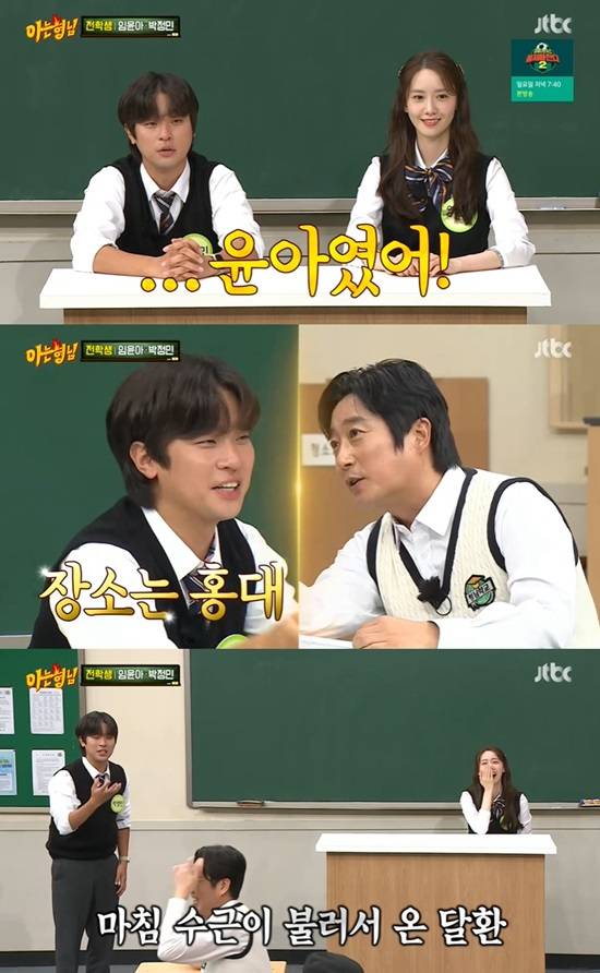25일 방송된 JTBC 예능프로그램 '아는 형님'에는 배우 임윤아와 박정민이 전학생으로 출연했다.