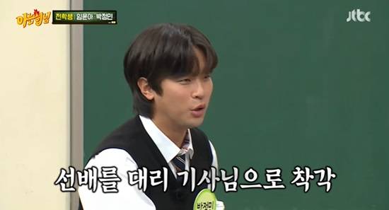 이어 박정민은 "정신을 차리고 집에 가야겠더라. 친구한테 대리 기사님을 불러 달라고 한 뒤 잠에 들었다. 친구가 깨워서 일어났는데 개량한복을 입으신 분이 서 계시더라. 그런데 안 따라 오시더라. 정신 차리고 보니까 조달환 형이었다"며 마침 이수근이 불러 조달환이 와있었다고 했다. 박정민은 "내가 너무 미안해서 다음 날 문자 보냈다"고 말해 웃음을 안겼다.