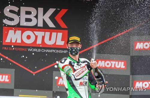 epa09487268 Dutch SuperSport300 rider Jeffrey Buis (c) celebrates on podium after he won a race of Motul Spanish Round of Superbike World Championship at Circuito de Jerez-Angel Nieto track in Jerez de la Frontera, Spain, 25 September 2021. EPA/Roman Rios