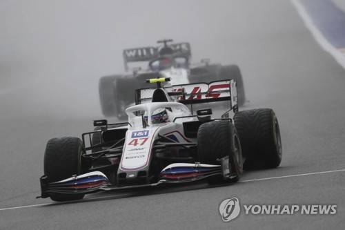 epa09487279 German Formula One driver Mick Schumacher (front) of the Haas F1 Team in action during the qualifying session of the 2021 Formula One Grand Prix of Russia at the Sochi Autodrom race track in Sochi, Russia, 25 September 2021. The Formula One Grand Prix of Russia will take place on 26 September 2021. EPA/Yuri Kochetkov