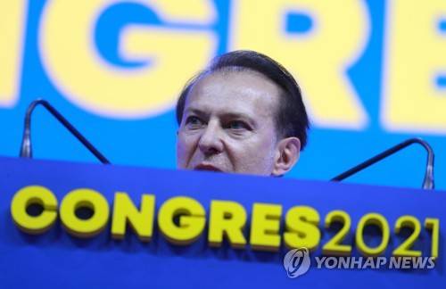 epa09487303 Romanian Prime Minister Florin Citu delivers a speech at the National Liberal Party (PNL) Congress in Bucharest, Romania, 25 September 2021. Up to 5.000 PNL party representatives from all over the country participate at the PNL Summit, held at Romexpo Exhibition Centre, to elect a new party leader. Romania's Prime Minister Florin Citu will challenge party leader Ludovic Orban, the president of the Parliament Deputee Chamber. Party members' access to the conference hall will be allowed only by presenting the vaccination certificate or a negative test. EPA/ROBERT GHEMENT