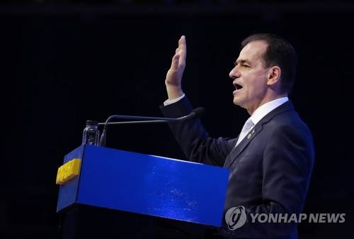epa09487308 PNL leader Ludovic Orban delivers a speech at the National Liberal Party (PNL) Congress in Bucharest, Romania, 25 September 2021. Up to 5.000 PNL party representatives from all over the country participate at the PNL Summit, held at Romexpo Exhibition Centre, to elect a new party leader. Romania's Prime Minister Florin Citu will challenge party leader Ludovic Orban, the president of the Parliament Deputee Chamber. Party members' access to the conference hall will be allowed only by presenting the vaccination certificate or a negative test. EPA/ROBERT GHEMENT