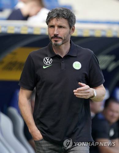 epa09487315 Wolfsburg's head coach Mark van Bommel reacts before the German Bundesliga soccer match between TSG 1899 Hoffenheim and VfL Wolfsburg in Sinsheim, Germany, 25 September 2021. EPA/RONALD WITTEK CONDITIONS - ATTENTION: The DFL regulations prohibit any use of photographs as image sequences and/or quasi-video.