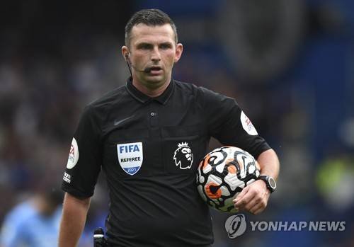 epa09487322 Referee Michael Oliver reacts during the English Premier League soccer match between Chelsea FC and Manchester City in London, Britain, 25 September 2021. EPA/Facundo Arrizabalaga EDITORIAL USE ONLY. No use with unauthorized audio, video, data, fixture lists, club/league logos or 'live' services. Online in-match use limited to 120 images, no video emulation. No use in betting, games or single club/league/player publications