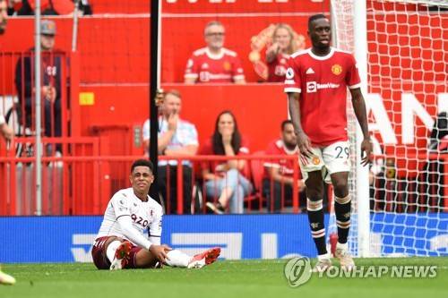 epa09487359 Jacob Ramsey (L) of Aston Villa reacts after sustaining an injury during the English Premier League soccer match between Manchester United and Aston Villa in Manchester, Britain, 25 September 2021. EPA/Peter Powell EDITORIAL USE ONLY. No use with unauthorized audio, video, data, fixture lists, club/league logos or 'live' services. Online in-match use limited to 120 images, no video emulation. No use in betting, games or single club/league/player publications