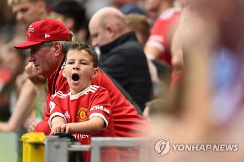 epa09487429 A child yawns during the English Premier League soccer match between Manchester United and Aston Villa in Manchester, Britain, 25 September 2021. EPA/Peter Powell EDITORIAL USE ONLY. No use with unauthorized audio, video, data, fixture lists, club/league logos or 'live' services. Online in-match use limited to 120 images, no video emulation. No use in betting, games or single club/league/player publications