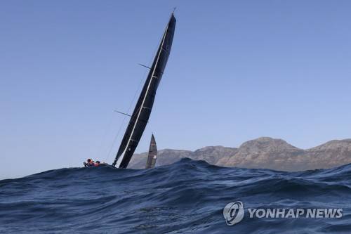 epa09487432 Yachts race during the Spring Regatta in False Bay, Cape Town, South Africa, 25 September 2021. Hosted by the False Bay Yacht Club the annual Spring Regatta sees some of South Africa's premier offshore racing yachts sailing against each other in the Indian Ocean waters of False Bay. EPA/NIC BOTHMA