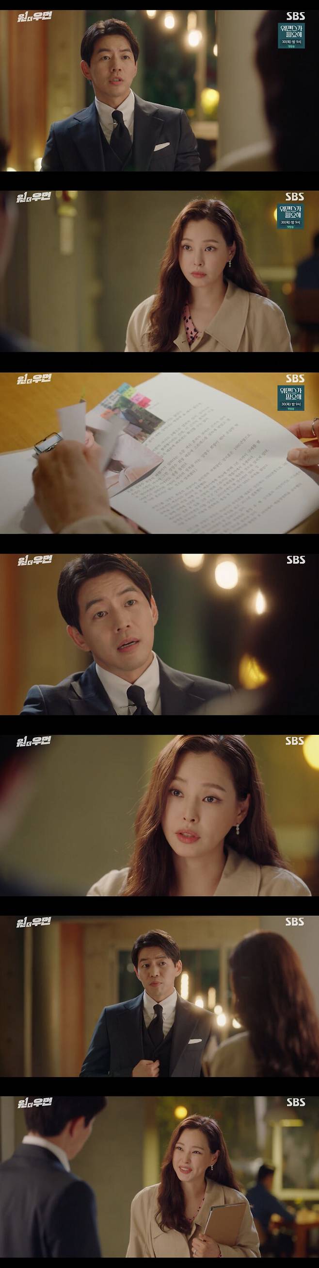 25일 방송된 SBS 금토 드라마 '원더우먼'에서는 한승욱(이상윤 분)과 조연주(이하늬 분)가 손을 잡았다.