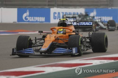 epa09487461 British Formula One driver Lando Norris of the McLaren F1 Team in action during the qualifying session of the 2021 Formula One Grand Prix of Russia at the Sochi Autodrom race track in Sochi, Russia, 25 September 2021. The Formula One Grand Prix of Russia will take place on 26 September 2021. EPA/Yuri Kochetkov