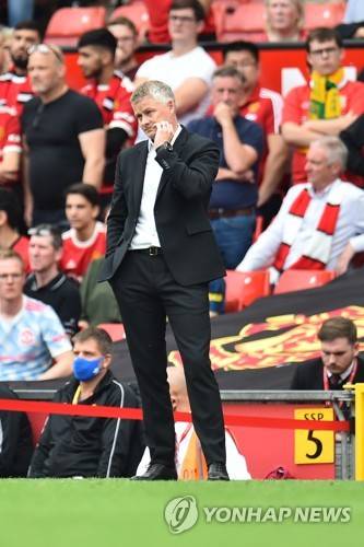 epa09487481 Manchester United manager Ole Gunnar Solskjaer reacts during the English Premier League soccer match between Manchester United and Aston Villa in Manchester, Britain, 25 September 2021. EPA/Peter Powell EDITORIAL USE ONLY. No use with unauthorized audio, video, data, fixture lists, club/league logos or 'live' services. Online in-match use limited to 120 images, no video emulation. No use in betting, games or single club/league/player publications