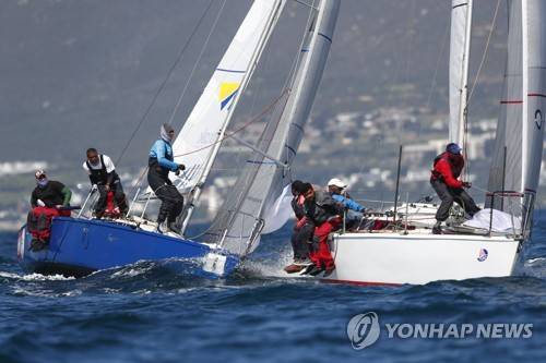 epa09487487 Yachts race during the Spring Regatta in False Bay, Cape Town, South Africa, 25 September 2021. Hosted by the False Bay Yacht Club the annual Spring Regatta sees some of South Africa's premier offshore racing yachts sailing against each other in the Indian Ocean waters of False Bay. EPA/NIC BOTHMA