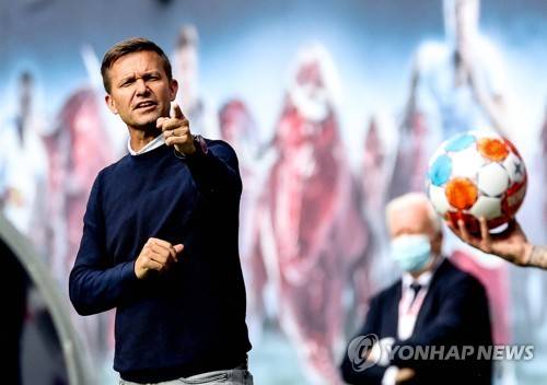 epa09487608 Leipzig's coach Jesse Marsch reacts during the German Bundesliga soccer match between RB Leipzig and Hertha BSC in Leipzig, Germany, 25 September 2021. EPA/FILIP SINGER CONDITIONS - ATTENTION: The DFL regulations prohibit any use of photographs as image sequences and/or quasi-video.