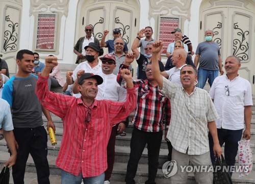 Supporters of Tunisia's President Kais Saied take part in a protest