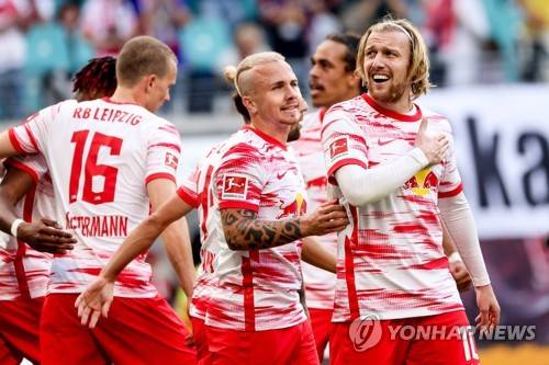 epa09487675 Leipzig's Emil Forsberg celebrates after scoring the 4-0 during the German Bundesliga soccer match between RB Leipzig and Hertha BSC in Leipzig, Germany, 25 September 2021. EPA/FILIP SINGER CONDITIONS - ATTENTION: The DFL regulations prohibit any use of photographs as image sequences and/or quasi-video.