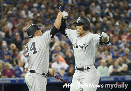 뉴욕 양키스는 26일(이하 한국 시간) 오전 보스턴 펜웨이 파크에서 열린 보스턴 레드삭스전에서 1-2로 끌려가다가 8회초 'Big G' 지안칼로 스탠튼의 시즌 33호 만루 홈런으로 5-3 대역전승을 거두었다. 뉴욕 양키스는 5연승을 달리며 7경기를 남겨 놓은 시점에서 보스턴과 88승67패로 동률을 이루었다. 마침내 아메리칸리그 와일드카드 레이스 공동 선두가 됐다.